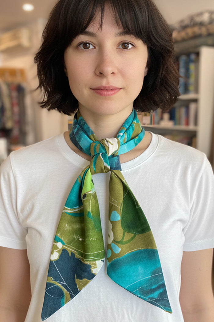 The finishing touch your outfit’s been waiting for. This limited-edition Twilly scarf in our large size is made in 100% cotton double gauze from Japan, featuring in shades of green this stunning "As it is" print by Nani Iro. Whether knotted at the neck, wrapped around your ponytail, or tied to your tote, it adds a vibrant pop of personality to any look.