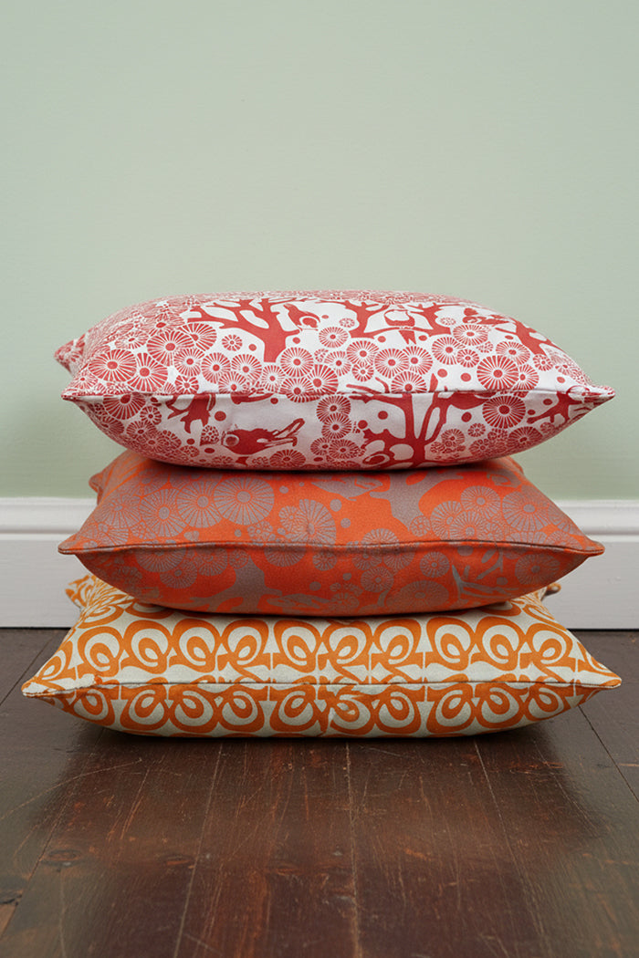 100% cotton canvas in a graphic print with soft sea green ground and striking print in mandarin.Perfect to add some colour to your room and style together with complementary designs, trims and colours.