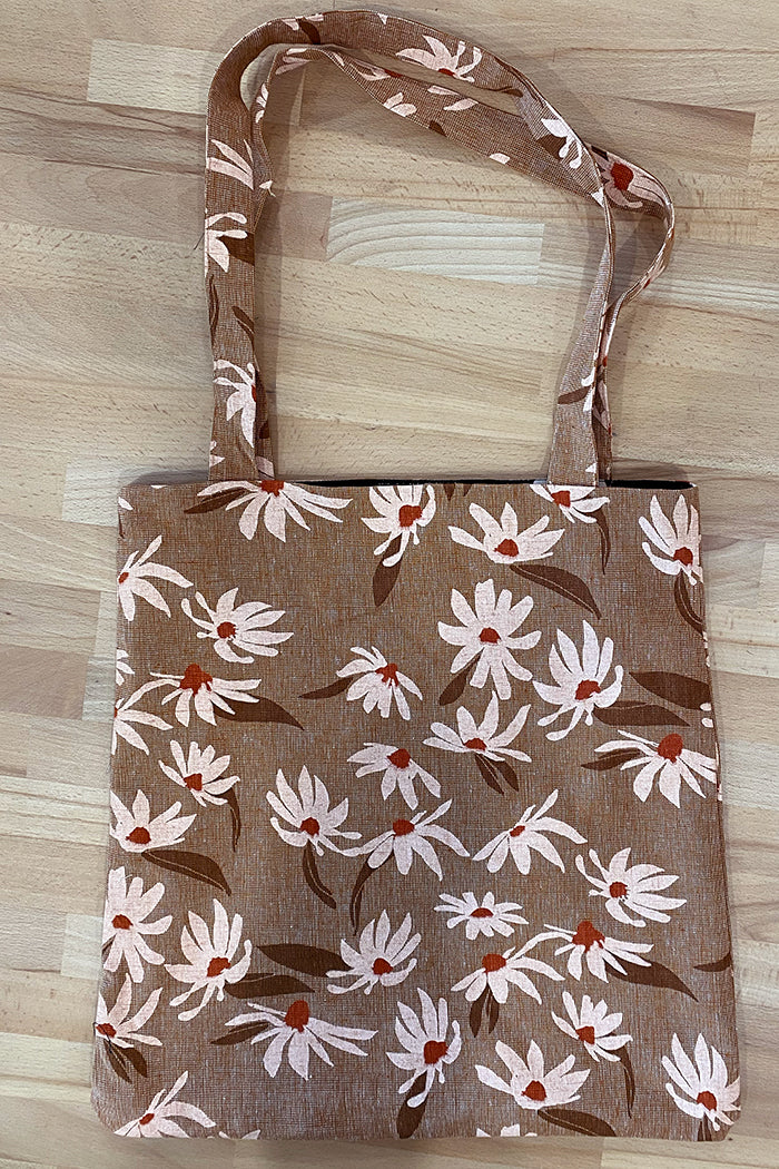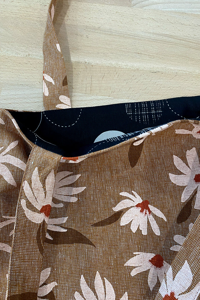 Everyday Tote - Ginger Flannel Flowers with Jot Black