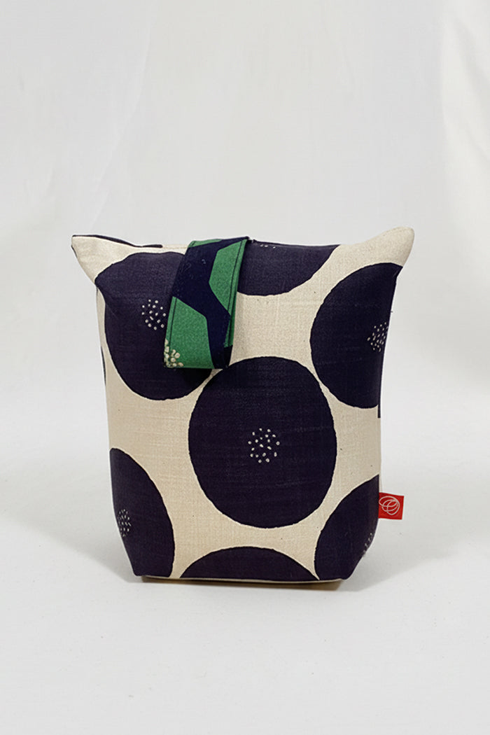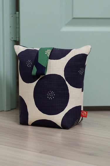 In cotton, this graphic design from Japan has large random dots in blue and on a natural coloured ground, this doorstop is a handy item for any room. The doorstop has a zip closure at the bottom and the rice filling is bagged for easy removal.