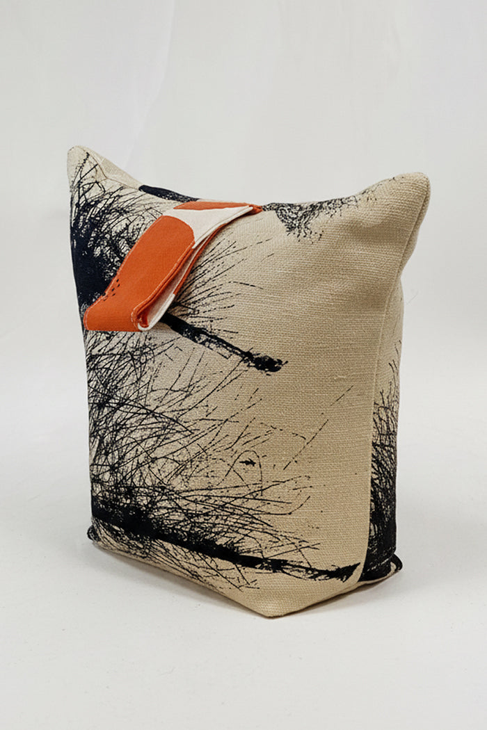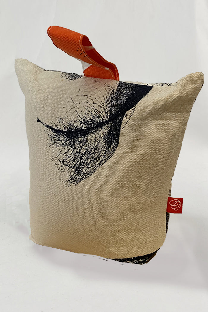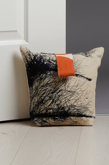 In a 100% cotton, is in our original screen printed design feather, our doorstop is a handy item for any room. The doorstop has a zip closure at the bottom and the rice filling is bagged for easy removal.