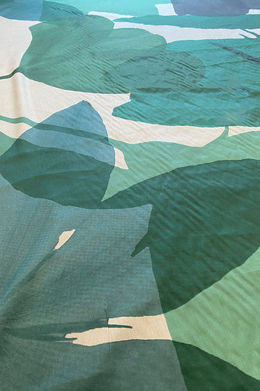 - Print: Digitally printed giant green floral, unique placement due to large repeat
