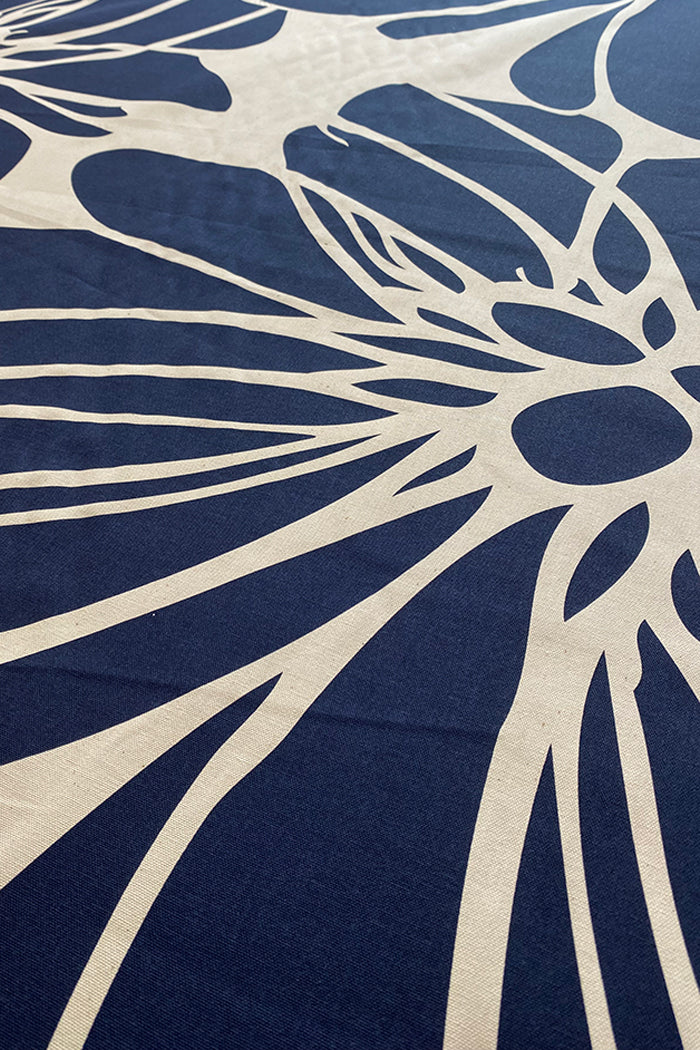 Why You'll Love It: In our original Scandi-inspired "Bloom" design with an indigo (deep blue) on an natural ground. The fabric is hardwearing 100% Oxford Cotton from Japan, hand screen printed here in Sydney.