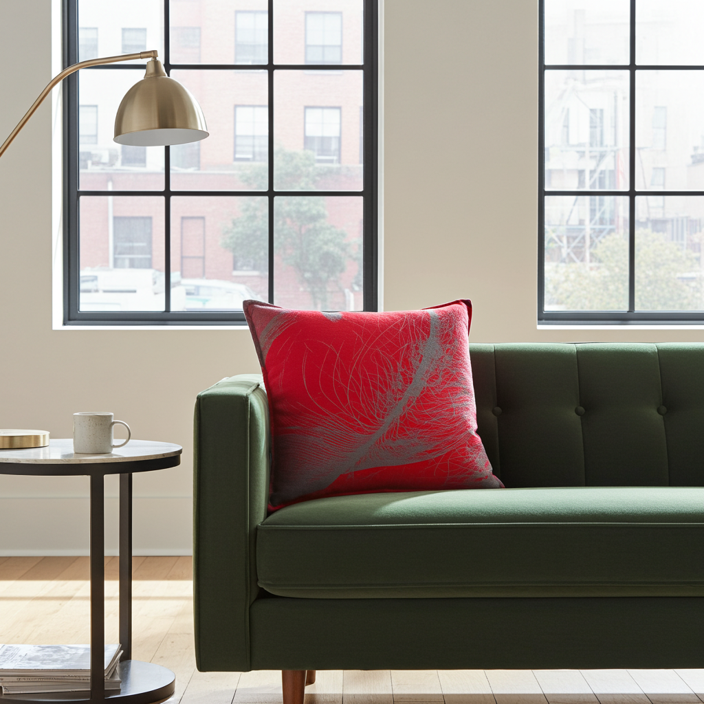 Styling Tip: Layer with solid grey or red cushions for a textured, curated look.