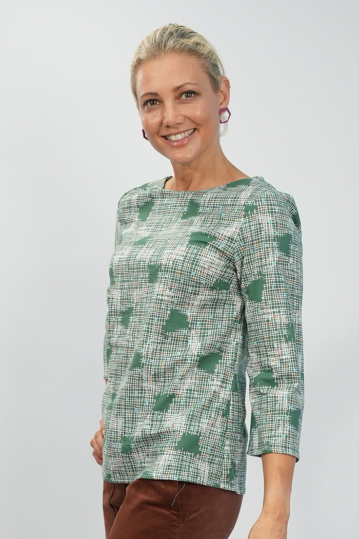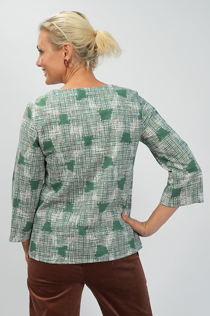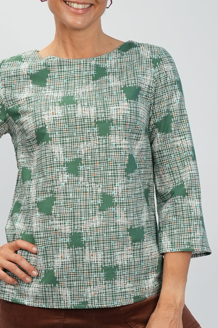 Lori Top - Green Crosshatch