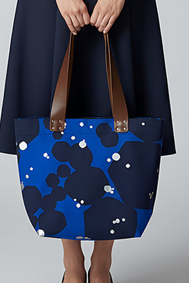 Lucy Tote - Poole Navy Blue with Metallic Silver Dots