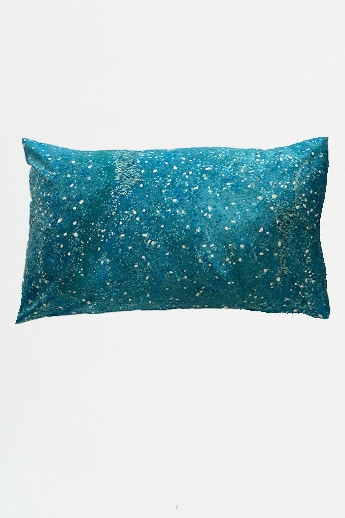 In a 100% cotton sateen fabric in a lovely fabric from Japan by Nani Iro in a gorgeous turquoise print. The pillowcases feel lovely and silky.