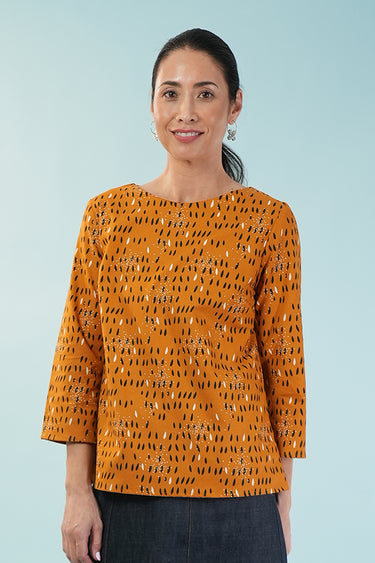 Our Lori top is understated and simple, with a relaxed fit and 3/4 drop sleeves that are effortlessly flattering, with a boat neckline, bust darts and shaped through the body. This is a perfect addition to your wardrobe, wear it with pants or your favourite skirt.