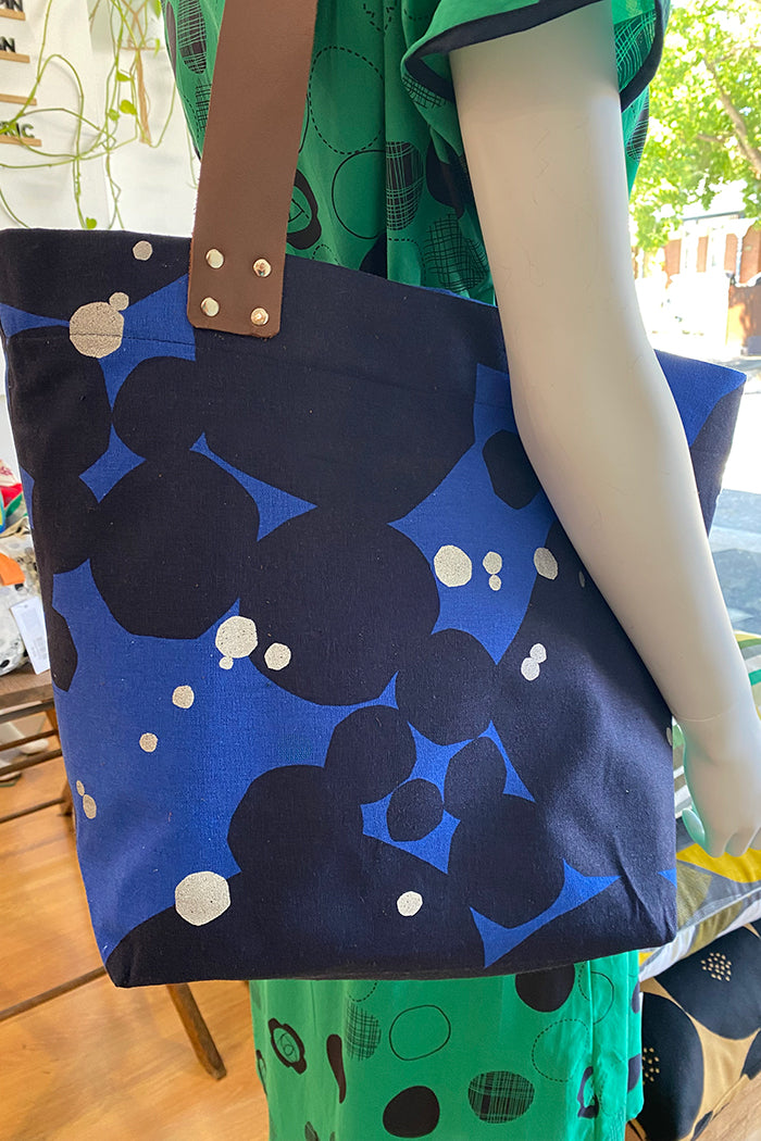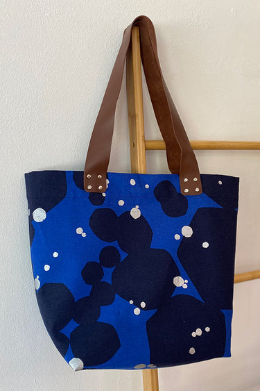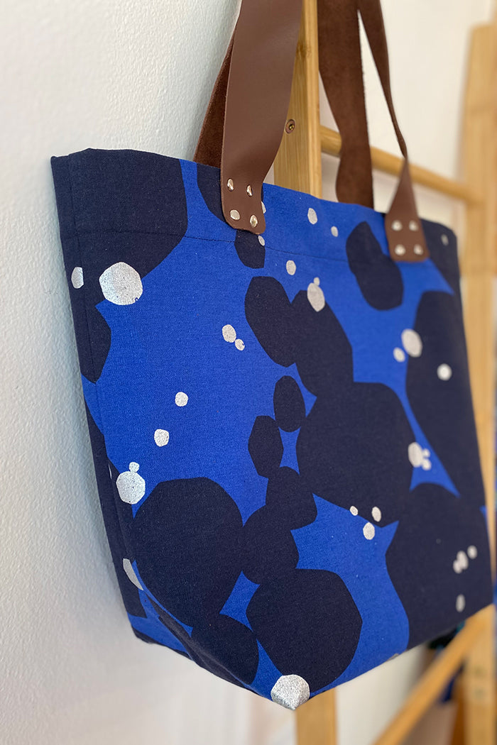 Lucy Tote - Poole Navy Blue with Metallic Silver Dots