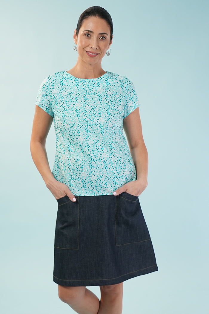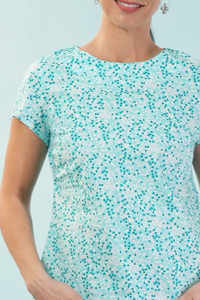 Our Shelley top is understated and simple, with a relaxed fit, bust darts, slight boat neckline, short sleeves with a keyhole and button detail at the back neck. The shelley top is effortlessly flattering, wear it with pants, shorts or your favourite skirt.. This is a perfect addition to your wardrobe