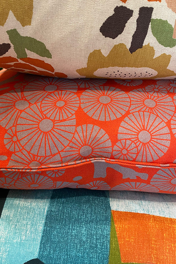 Our Theadora Jones cushions are made in Australia from carefully selected fabrics from around the world. We only buy small amounts of each fabric, so these are limited edition products.