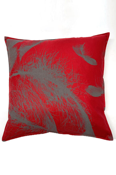 100% cotton canvas in a lovely feather print with rich red ground and striking print in smoke.Hand screen printed in Sydney